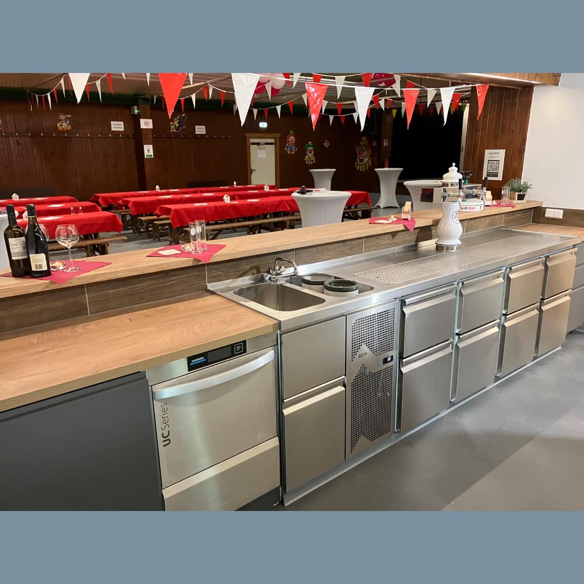 > Barraum: ca. 28 m² (bis zu 20 Personen), Bar-Theke mit Kühlschrank, Spüle, Tischen und Bestuhlung.