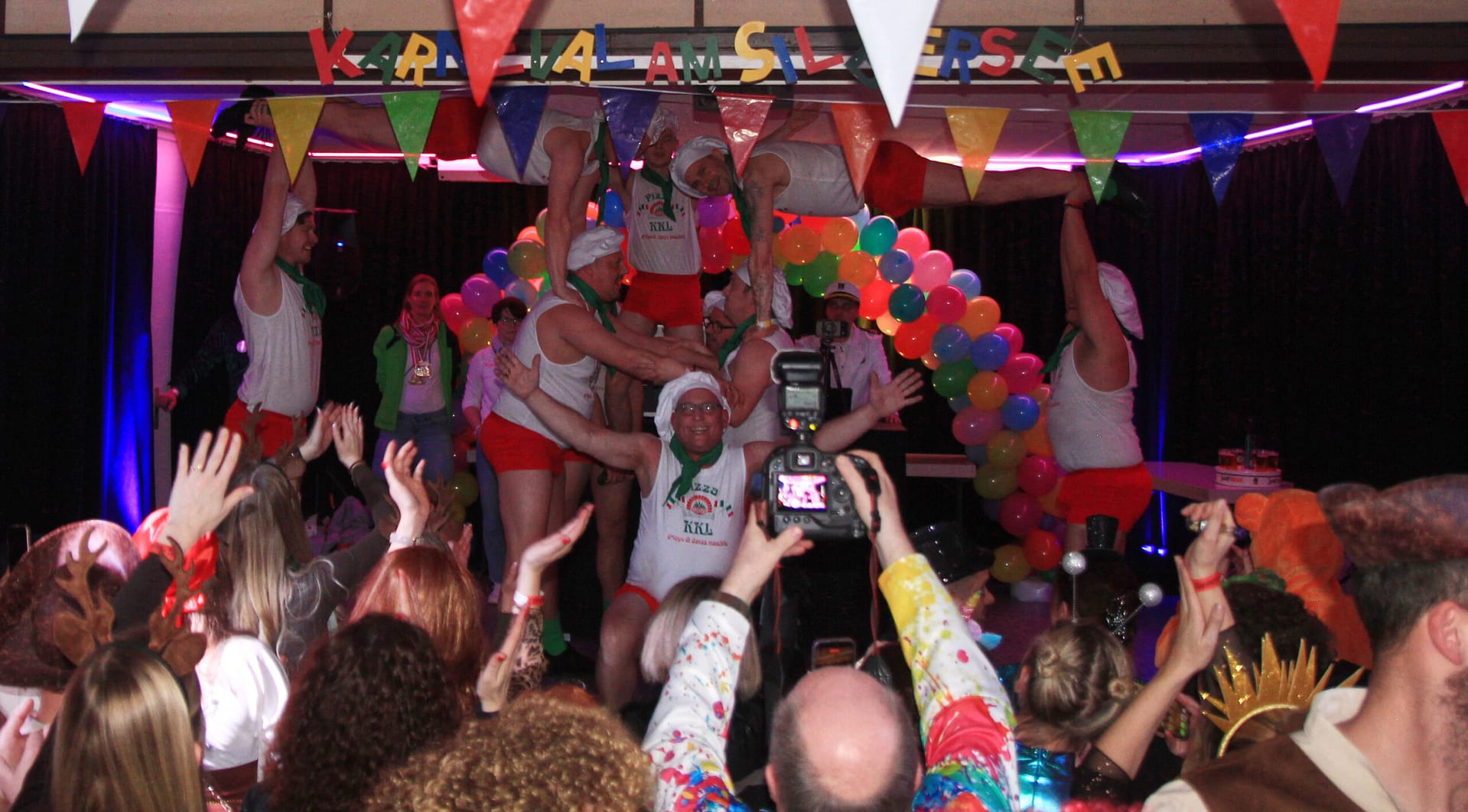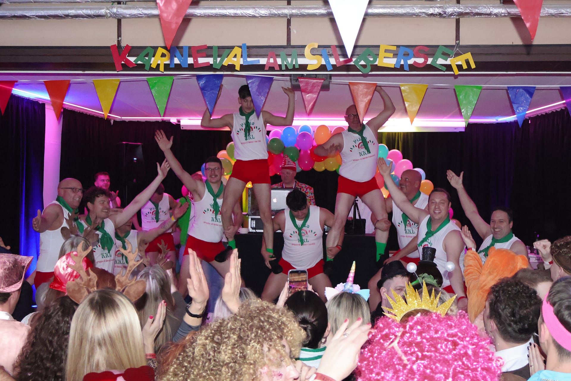 Ein weiteres Highlight war der jährliche Auftritt der KKL Männertanzgruppe des Karnevalskomitee Leppestraße, zu dem von Jahr zu Jahr mehr Groupies anreisen. Unter dem zeitlosen Motto „Italienische Köche“ bot das Dutzend strammer Burschen dem Publikum in der ausverkauften Silberseehalle eine dynamische Tanzchoreographie mit waghalsigen Akrobatikeinlagen, gepaart mit einem halb-ironischen Hauch männlicher Erotik. Vor der lautstark verlangten Zugabe sprach die Gruppe sich klar gegen sexualisierte Gewalt im Karneval aus: „Denkt immer daran: It’s only a dress, it’s not a yes“, was im Publikum auf große Zustimmung stieß.
