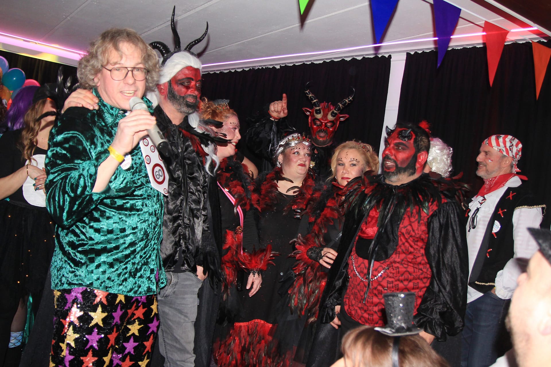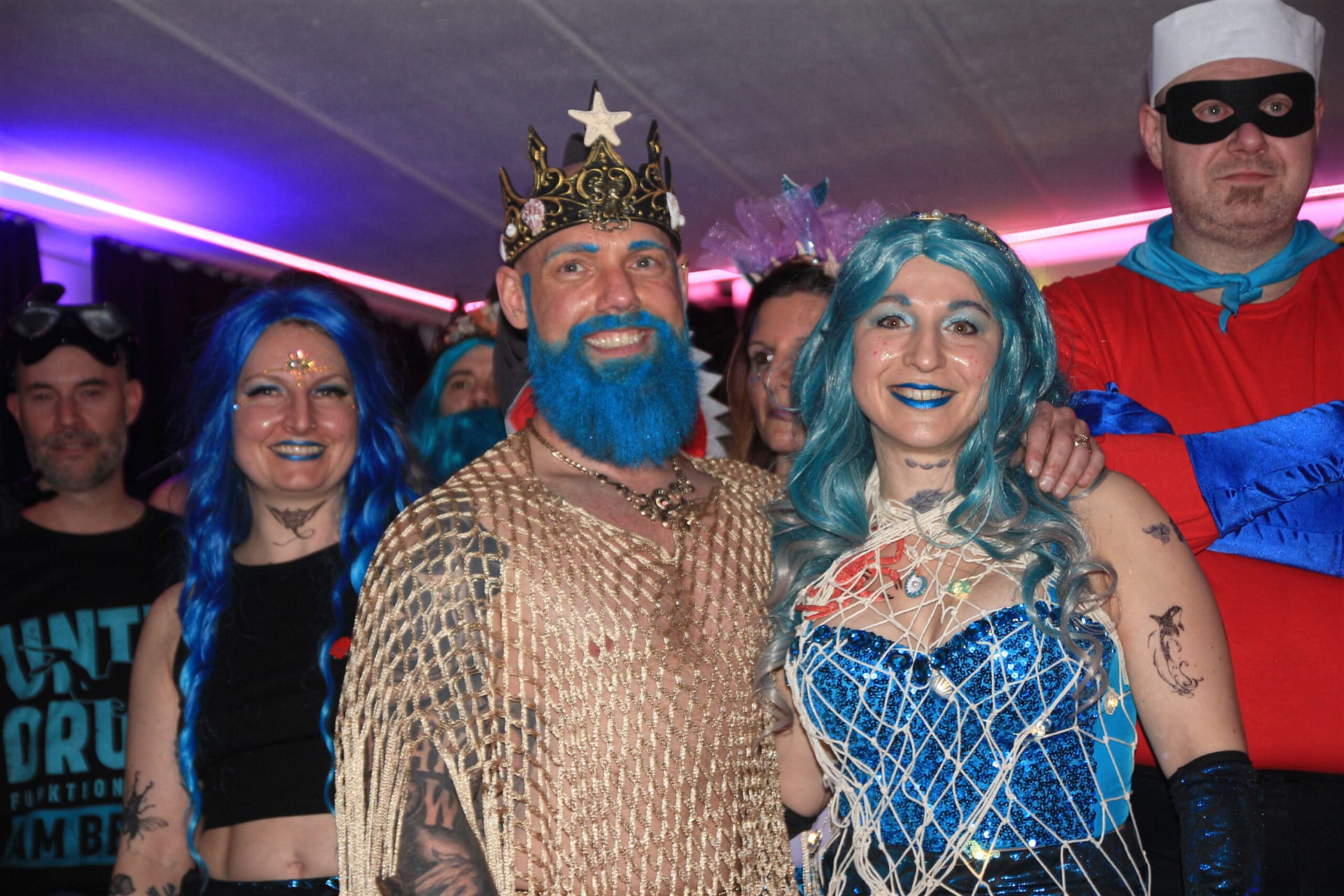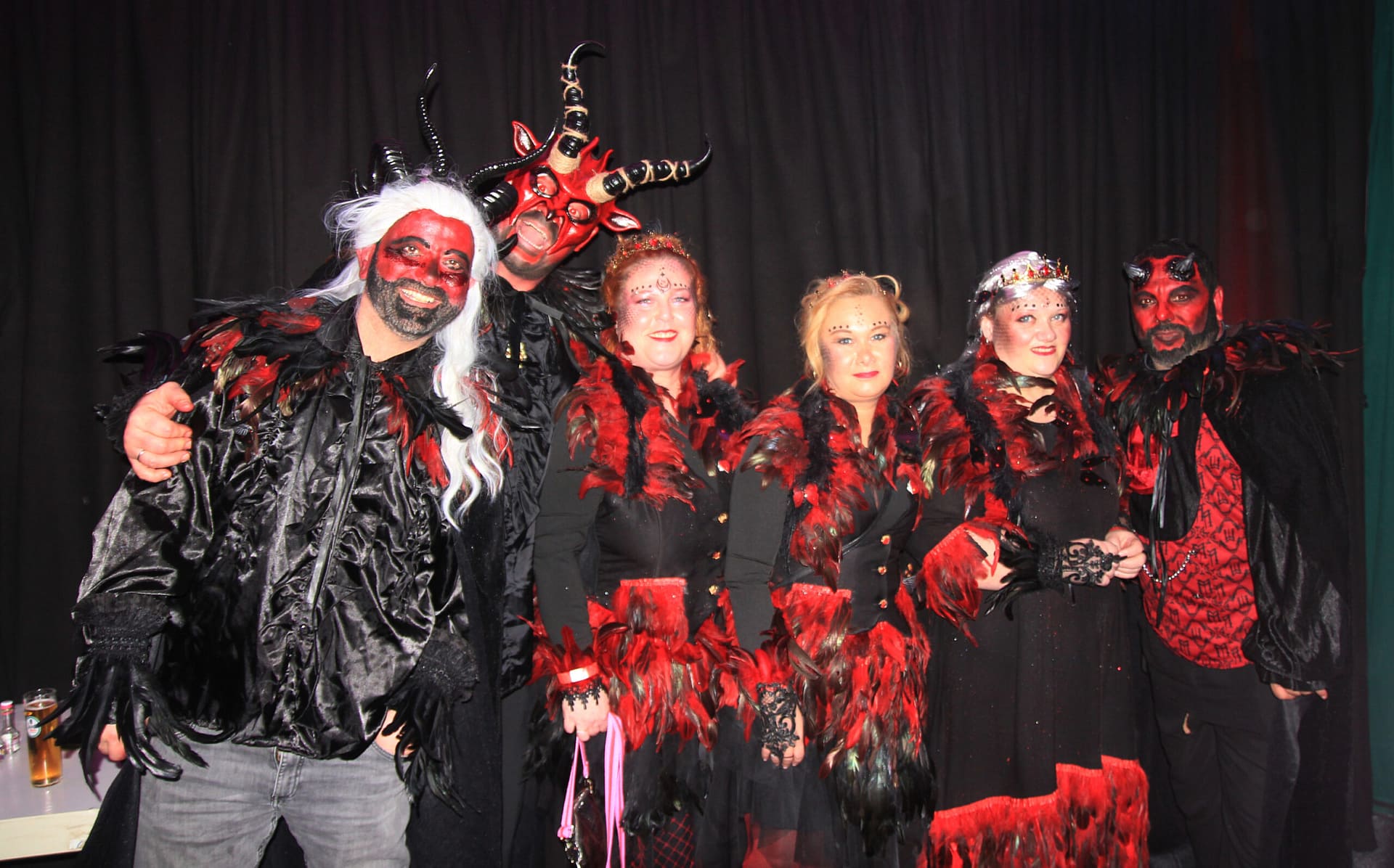 Zur Krönung des Abends wurden unter den zahlreichen aufwendigen und farbenfrohen Verkleidungen die drei originellsten Kostüme prämiert. Platz 1 ging dabei an die sechsköpfige und sechsfach gehörnte Gruppe „Des Teufels Braut“, die aufwendig geschminkt und mit selbst genähten Kostümen einen fürstlich finsteren Gesamteindruck bot. Platz 2 sicherte sich die prunkvoll maritim und schillernd kostümierte Formation „40 Jahre Wassermann“ um Conny und ihren Ehemann Nils, der in dieser Nacht seinen 40. Geburtstag feierte und dem das Glück gleich doppelt gewogen war, denn er gewann außerdem das Fässchen bei der Tombola. Platz 3 ging an einen als „Maui“ aus dem Disney-Animationsfilm „Vaiana“ verkleideten jungen Mann, der die Figur mit beeindruckender Authentizität und Stimmigkeit verkörperte.
