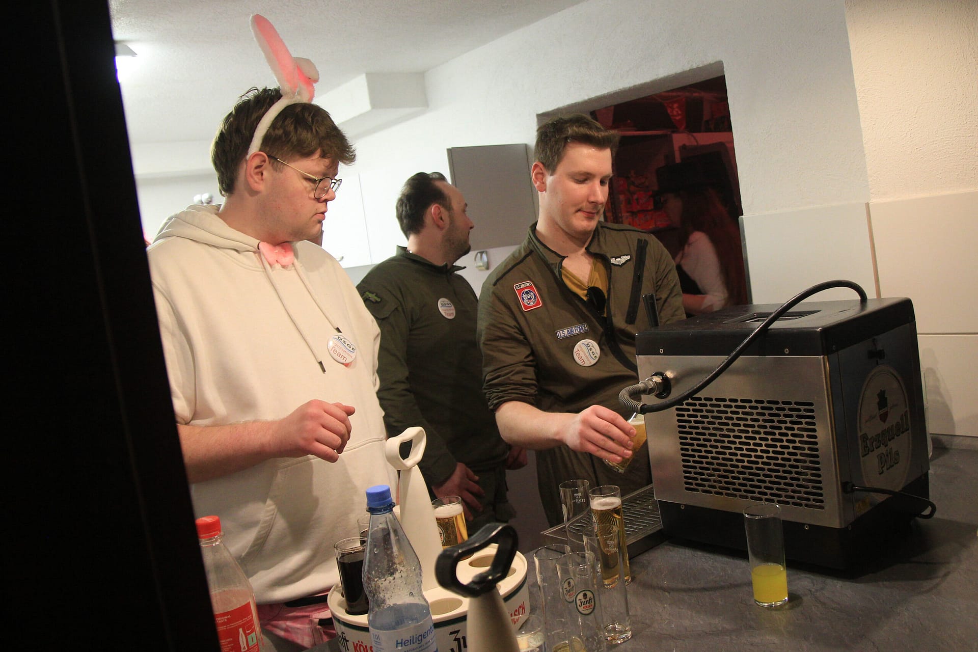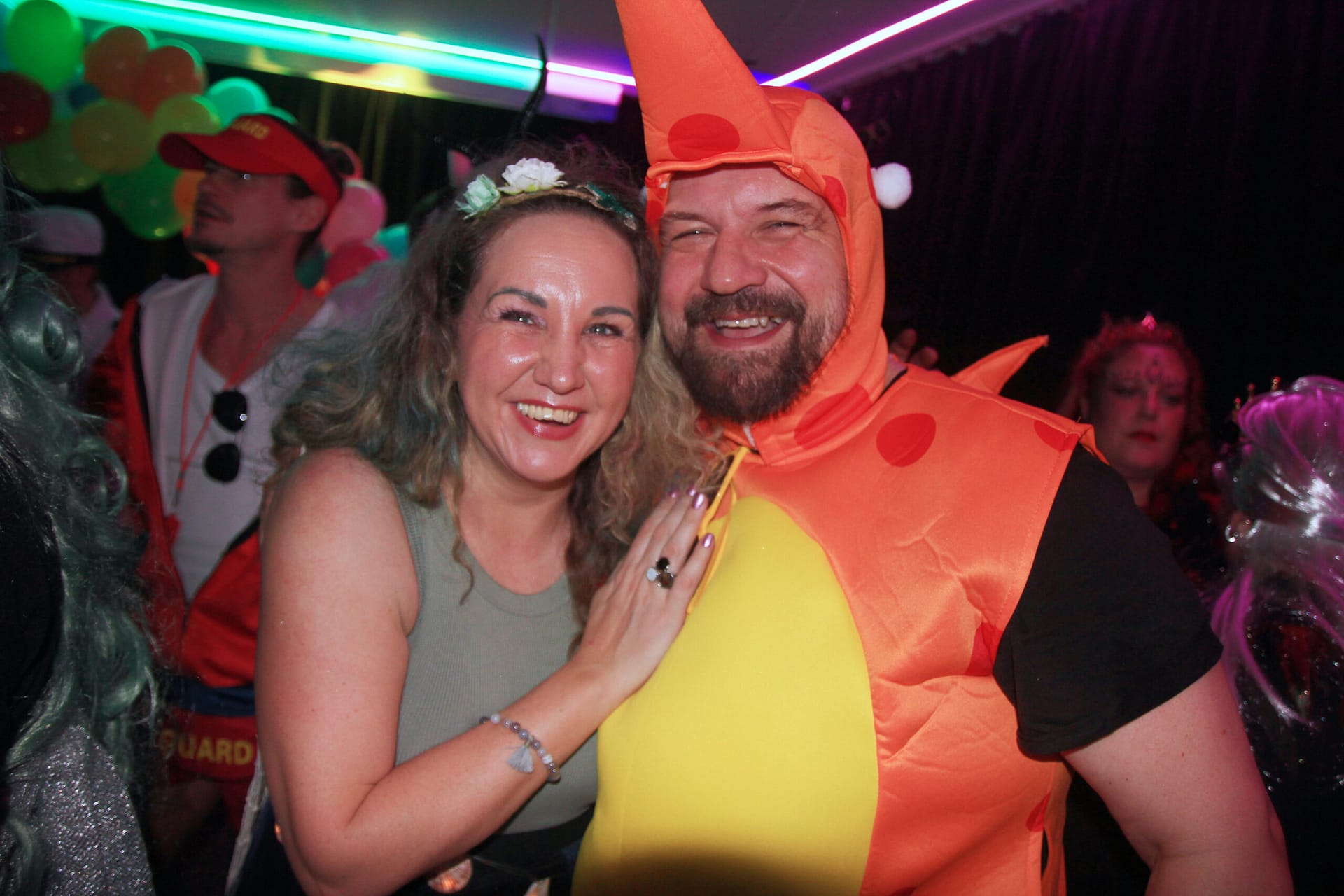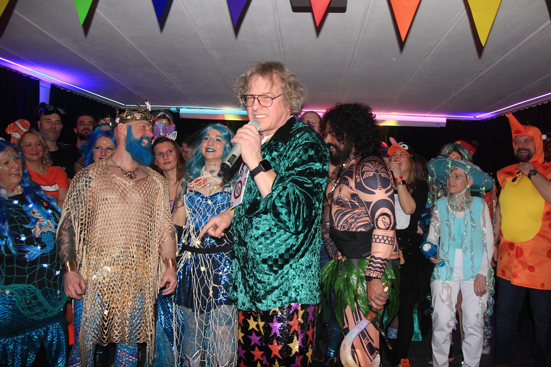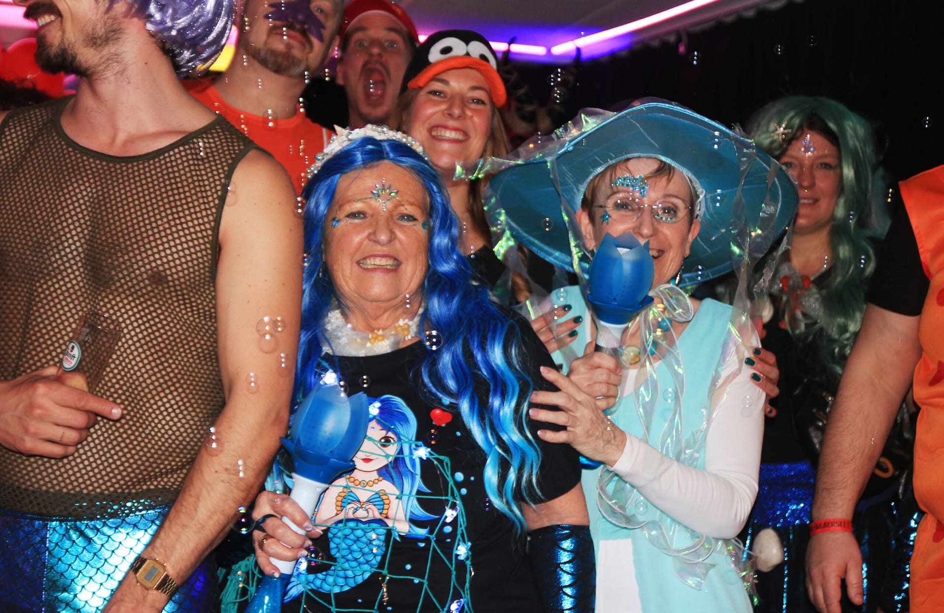 Zur Krönung des Abends wurden unter den zahlreichen aufwendigen und farbenfrohen Verkleidungen die drei originellsten Kostüme prämiert. Platz 1 ging dabei an die sechsköpfige und sechsfach gehörnte Gruppe „Des Teufels Braut“, die aufwendig geschminkt und mit selbst genähten Kostümen einen fürstlich finsteren Gesamteindruck bot. Platz 2 sicherte sich die prunkvoll maritim und schillernd kostümierte Formation „40 Jahre Wassermann“ um Conny und ihren Ehemann Nils, der in dieser Nacht seinen 40. Geburtstag feierte und dem das Glück gleich doppelt gewogen war, denn er gewann außerdem das Fässchen bei der Tombola. Platz 3 ging an einen als „Maui“ aus dem Disney-Animationsfilm „Vaiana“ verkleideten jungen Mann, der die Figur mit beeindruckender Authentizität und Stimmigkeit verkörperte.