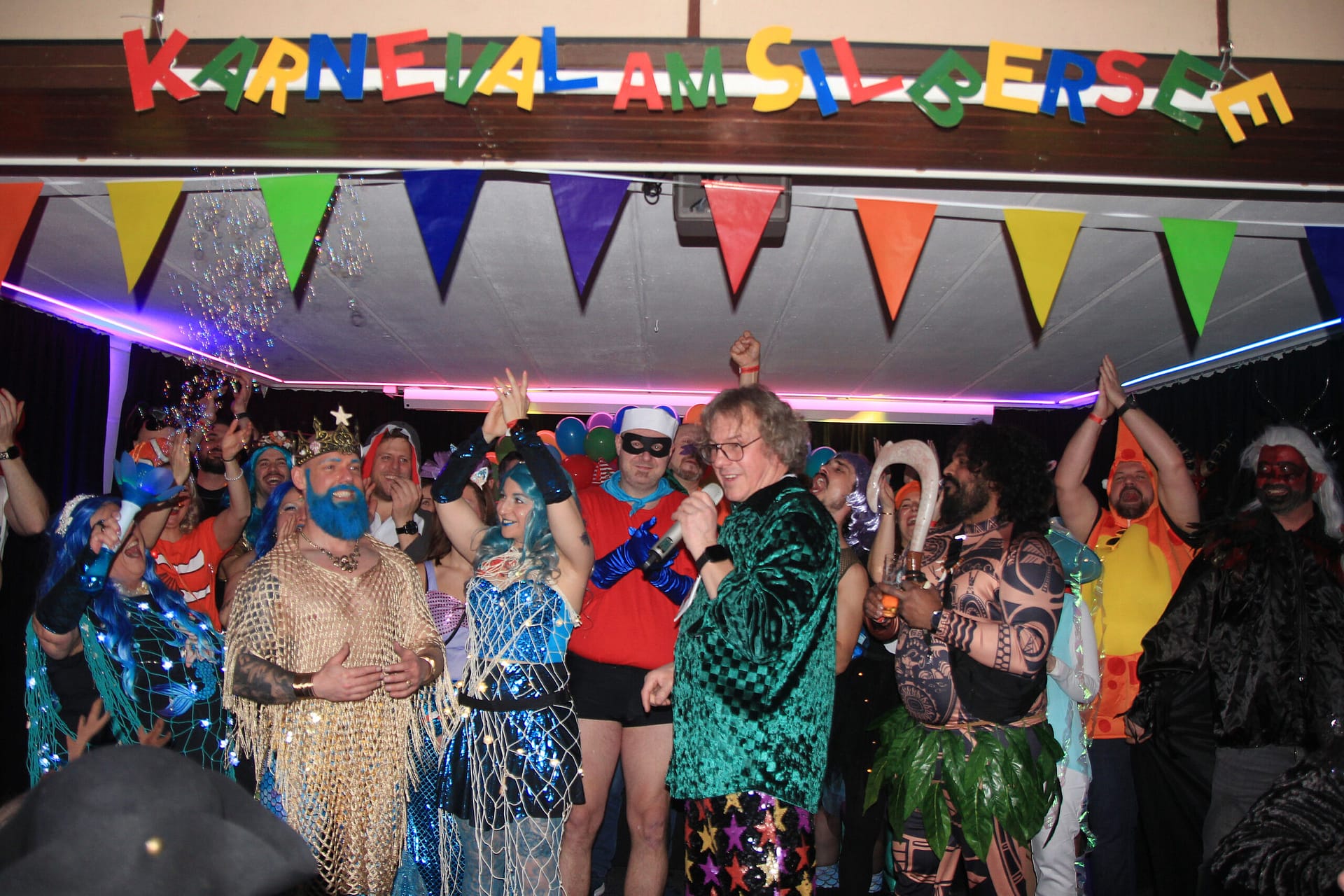 Bereits seit 1966 lädt die Dorf- und Sportgemeinschaft Erbland (DSGE), zu der auch die Ortschaften Schönenberg und Schneppsiefen gehören, zum Karneval am Silbersee. Beim 60. Jubiläum am Samstag, den 14. Februar 2026 wurde den 400 Gästen in der vereinseigenen Silberseehalle wieder ein fulminantes Programm geboten. Bereits zu Beginn um 20:11 Uhr betrat der erste Live-Act die Bühne: Die siebzehenköpfige und bunt kostümierte Samba-Trommelgruppe „ARA MACAO“ aus Köln eröffnete den Abend mit energetischen Tanzrythmen, die die Halle schnell zum Pulsieren brachten – und das ganz ohne Melodie.